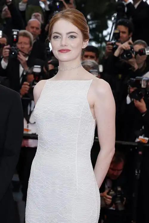 The refined elegance of Emma Stone’s ensemble stems largely from her precise mastery of color and materials.